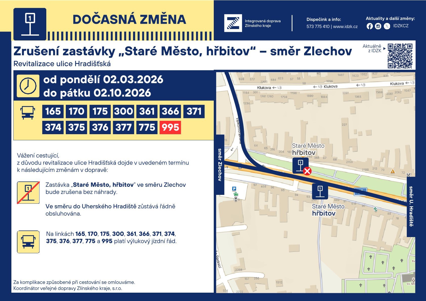Dočasné zrušení zastávky Staré Město - hřbitov