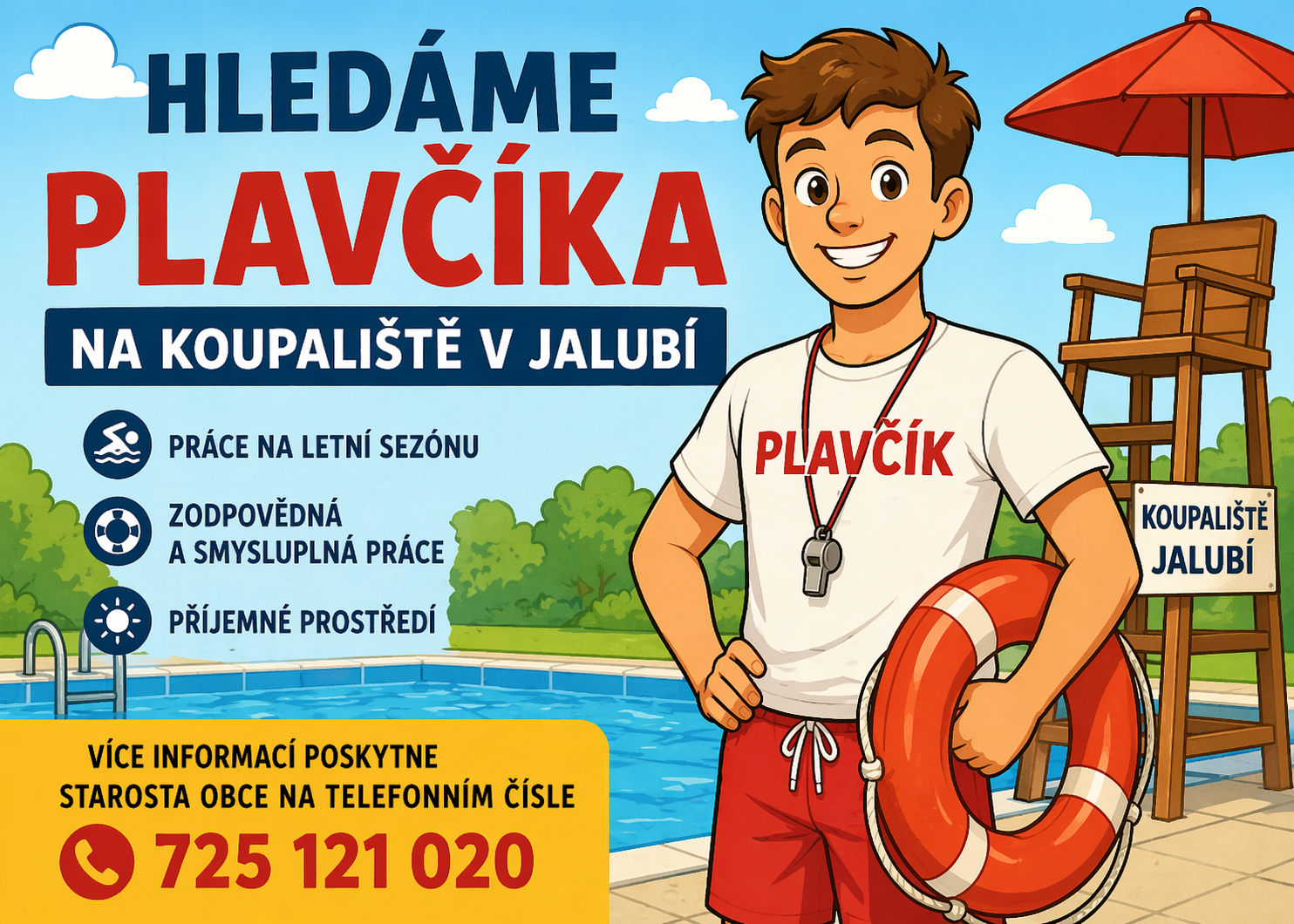 Obec Jalubí hledá plavčíka na koupaliště v Jalubí